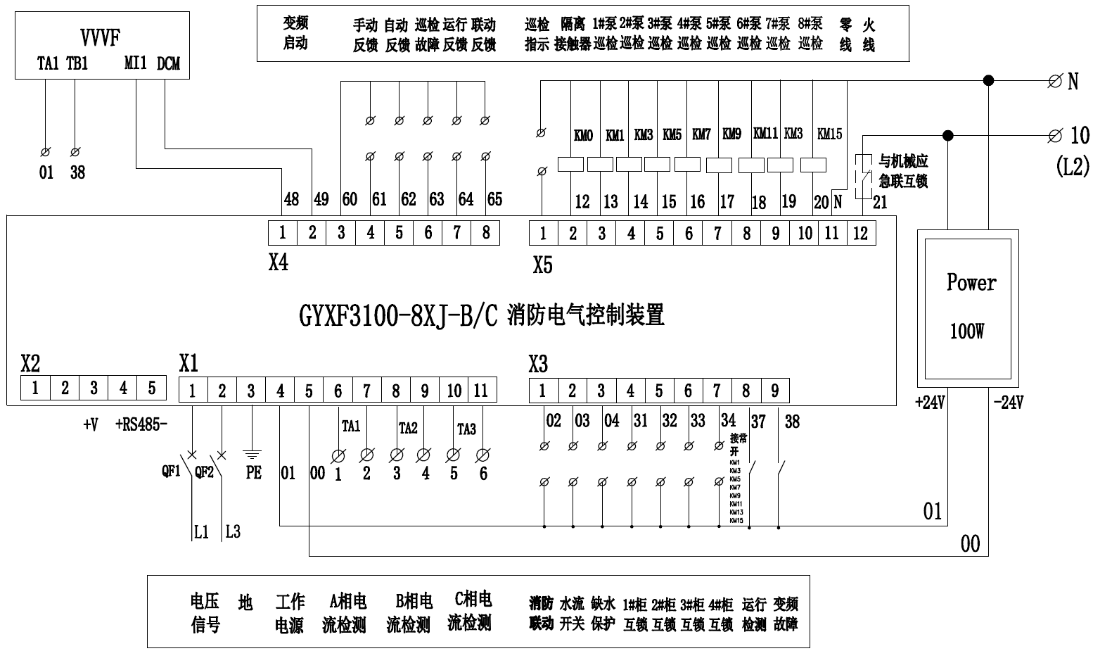 消防泵自動(dòng)巡檢控制器GYXF3100-8XJ接線圖